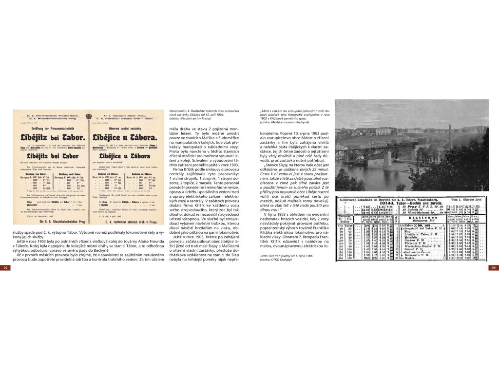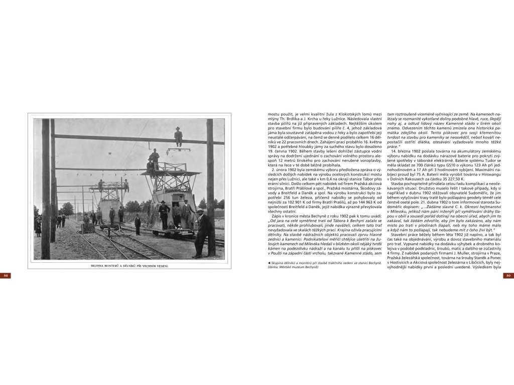 V posledních dvou desetiletích 19. Století probíhaly ve světě intenzivní snahy o zavádění elektrického pohonu nejprve v městské a posléze i železniční dopravě. Pozadu nebylo ani Rakousko-Uhersko, kde jedním z předních iniciátorů byl český vynálezce František Křižík. Právě on se zasloužil o to, že ani česká města nebyla v tomto vývoji pozadu. Poté, co začaly jezdit elektrické tramvaje v Praze a několika dalších městech, vznikla v roce 1903 také naše první železnice poháněná elektrickým proudem. Vedla z jihočeského Tábora do Bechyně a nejen o její bohaté historii pojednává tato kniha.